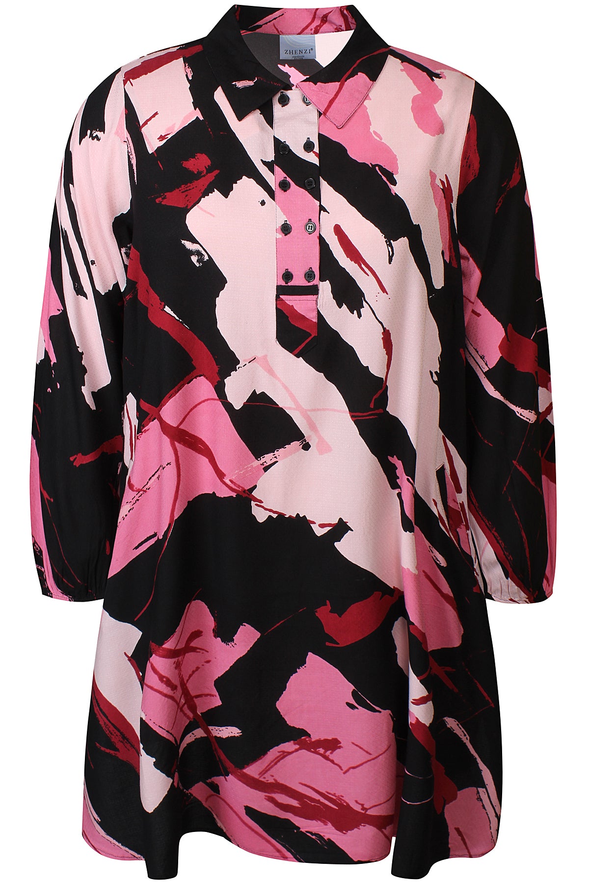 ANITY 1206 is a loose-fitting and comfortable dress with an artistic print and plenty of freedom to move. The design features a double button placket at the front, practical side pockets, and elasticated cuffs that add a relaxed yet feminine touch.